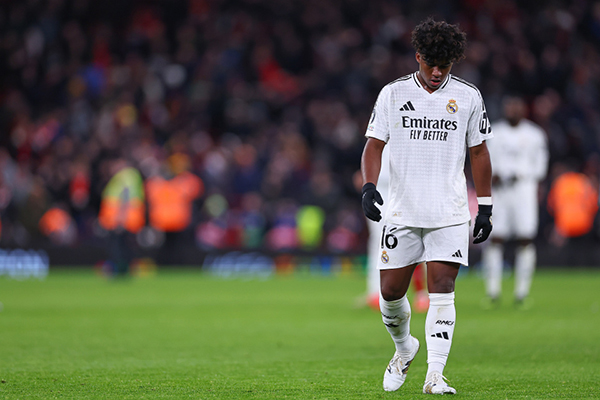 来源:直播车11-28 17:30直播车讯在北京时间11月28日凌晨结束的欧冠联赛阶段第5轮一场焦点战中,卫冕冠军皇马在客场0-2被利物浦复仇成功,遭遇2连败后跌至积分榜第24位。而本场比赛18岁的巴西天才恩德里克尽管替补登场,却没能成为奇兵,反而因为故意犯规伤人引发争议。
