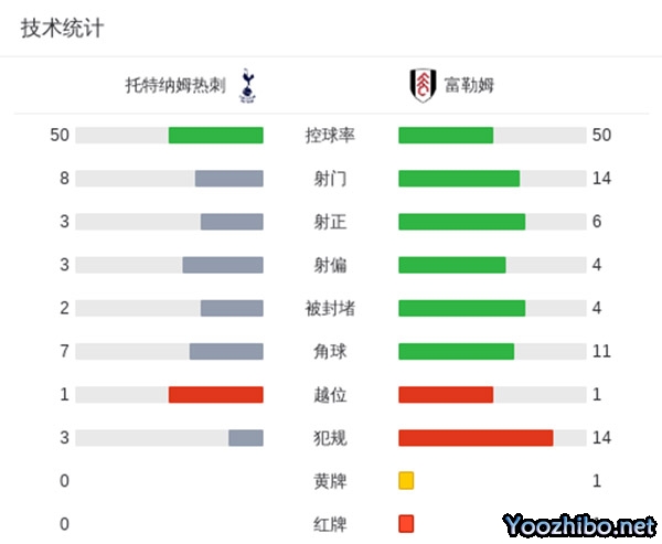 来源:直播车12-01 23:55 直播车讯 北京时间12月1日英格兰足球顶级联赛第13轮的较量中,托特纳姆热刺坐镇主场迎战富勒姆。上半场,孙兴慜开场打门被挡,希门尼斯近距离凌空打门被扑,德拉古辛头球攻门也被扑,伊沃比抽射变线被扑后中楣弹出,麦迪逊任意球攻门变线中柱;下半场,迪奥普头球攻门被挡,伊沃比转身凌空扫射还是被挡,维尔纳助攻布伦南凌空推射破门,伊沃比助攻凯尔尼劲射扳平,凯尔尼踩到库卢小腿被红牌罚下。最终,双方以1-1的比分握手言和。