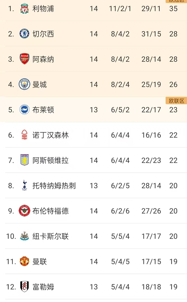 争冠态势乾坤扭转?利物浦领先缩窄,曼城阿森纳紧追不舍,曼联失色第11位