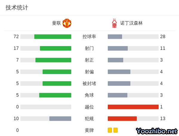 曼联2-3诺丁汉森林仍第13 霍伊伦B费破门曼联防线屡失误