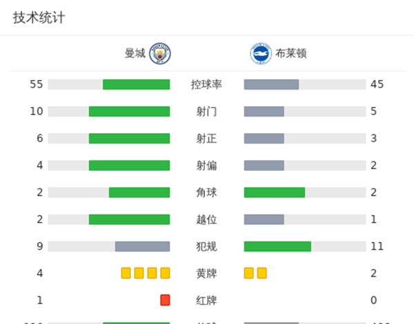 来源:直播车10-22 08:22 直播车讯 :北京时间10月21日英超联赛第9轮,曼城主场对阵布莱顿。比赛第7分钟,多库强势突破送助攻,阿尔瓦雷斯破门,第19分钟,哈兰德再下一城。下半场,比赛第73分钟,三笘薰强势突破送传中,法蒂混乱中破门,补时第5分钟,阿坎吉因拉拽法蒂吃到第二张黄牌被罚下。最终比分曼城2-1布莱顿。