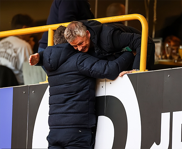 狼队本场94分钟惨遭绝杀,1-2遭遇四连败,排名倒数第二,前一位就是本场的对手伊普斯维奇。不过,《每日邮报》称,索尔斯克亚到场的真正原因,可能是与伊普斯维奇主帅基朗·麦肯纳见面。两人赛前拥抱,索帅竖起了大拇指。