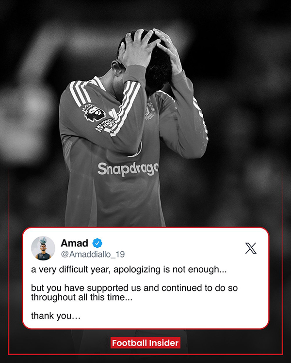 令人意外的是,截至目前,曼联队内公开道歉的球员仅有阿马德・迪亚洛,而他还是新帅阿莫林上任后发挥最为出色的球员之一。迪亚洛在年底阶段参与了 10 个进球,堪称曼联没输掉更多比赛的关键功臣。即便如此,在新旧年交替之际,他仍向球迷表达了歉意,并强调单纯道歉远远不够。迪亚洛在社交媒体上发布了自己抱头的照片,向 60 万粉丝坦言:“这是非常艰难的一年,只是道歉是不够的。但你们一直以来都支持我们,非常感谢。”