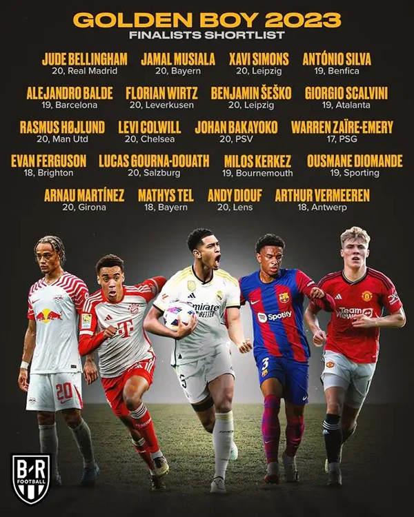 来源:直播车10-13 17:43直播车10月13日金童奖25人名单公布,贝林厄姆、穆西亚拉、霍伊伦、特尔、埃文-弗格森、亚马尔入选。