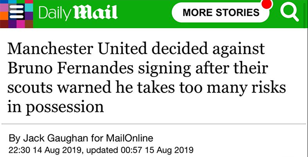 这一风格意味着B费肯定会在比赛中不断传球失误,曼联与布伦特福德之战,葡萄牙中场25次丢失球权,11次传中只有一次找到队友。这不是曼联不了解的特点,早在2019年夏季转会窗,英媒就披露,红魔一度放弃引进B费,因为球探提醒俱乐部,他很喜欢冒险传球,容易影响控球。