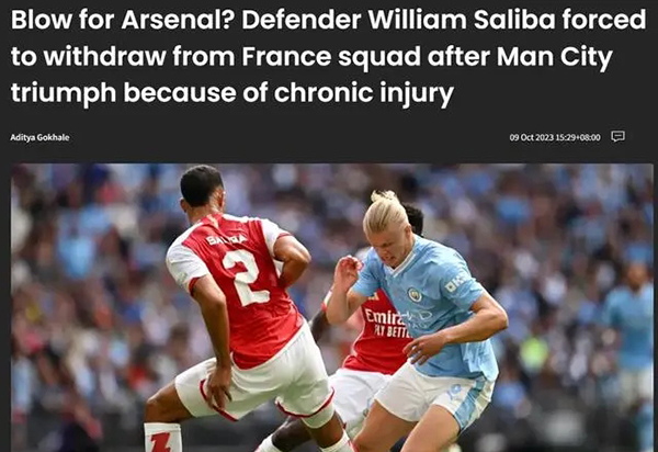 直播车10月09日讯阿森纳后卫威廉-萨利巴因在阿森纳1-0战胜曼城的比赛中脚趾受伤而退出了法国队。