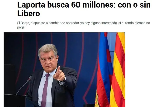 由于Libero无力支付,拉波尔塔只能从其他地方弥补现金。据《SPORT》报道,拉波尔塔声称有几个利益相关方感兴趣,但目前还未公开任何交易。