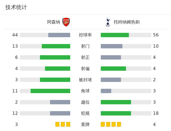 最终阿森纳主场2-2战平热刺。