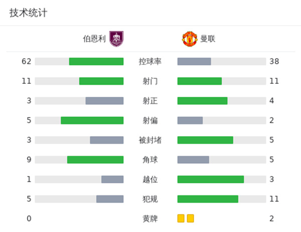 第45分钟,曼联率先打破僵局,埃文斯后场精准长传,B费禁区内不停球直接起右脚凌空爆射破门得分,曼联1-0伯恩利!