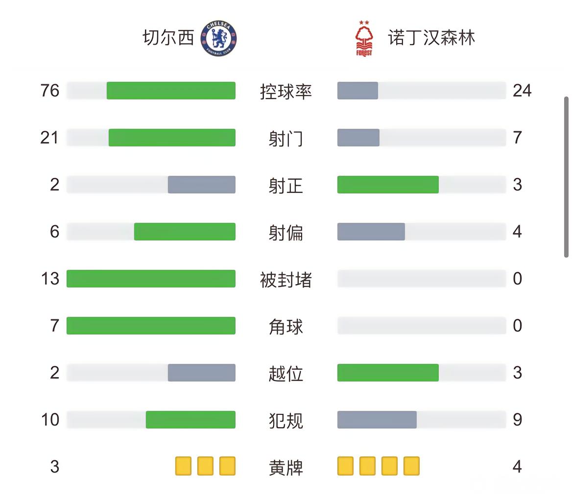 第47分钟,凯塞多中场停球失误被断,阿沃尼伊穿裆直塞,伊兰加禁区内插上推射得手,切尔西0-1诺丁汉森林。
