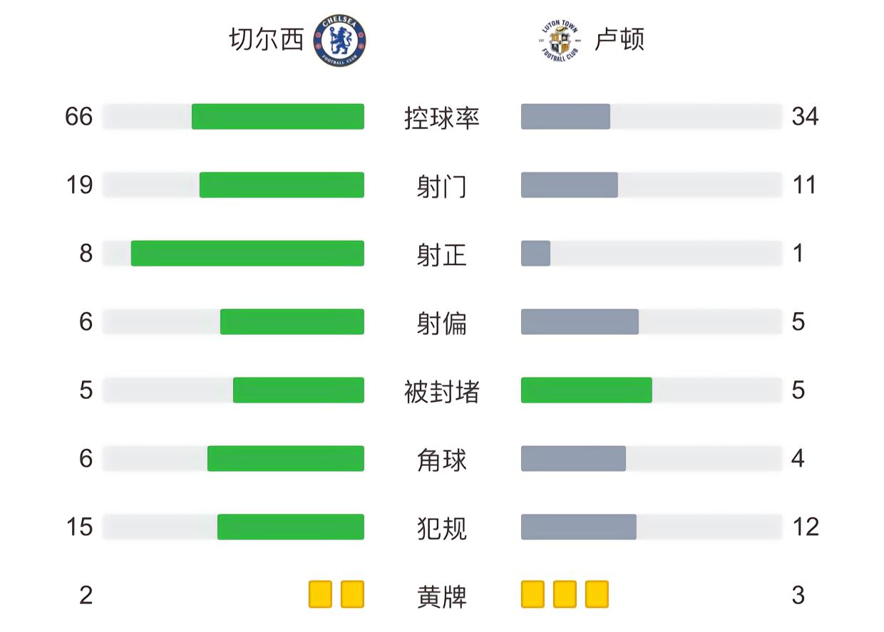 第75分钟,斯特林接到恩佐挑传,在右路送出传中,中路杰克逊拍马赶到,将球打进,切尔西3-0卢顿。