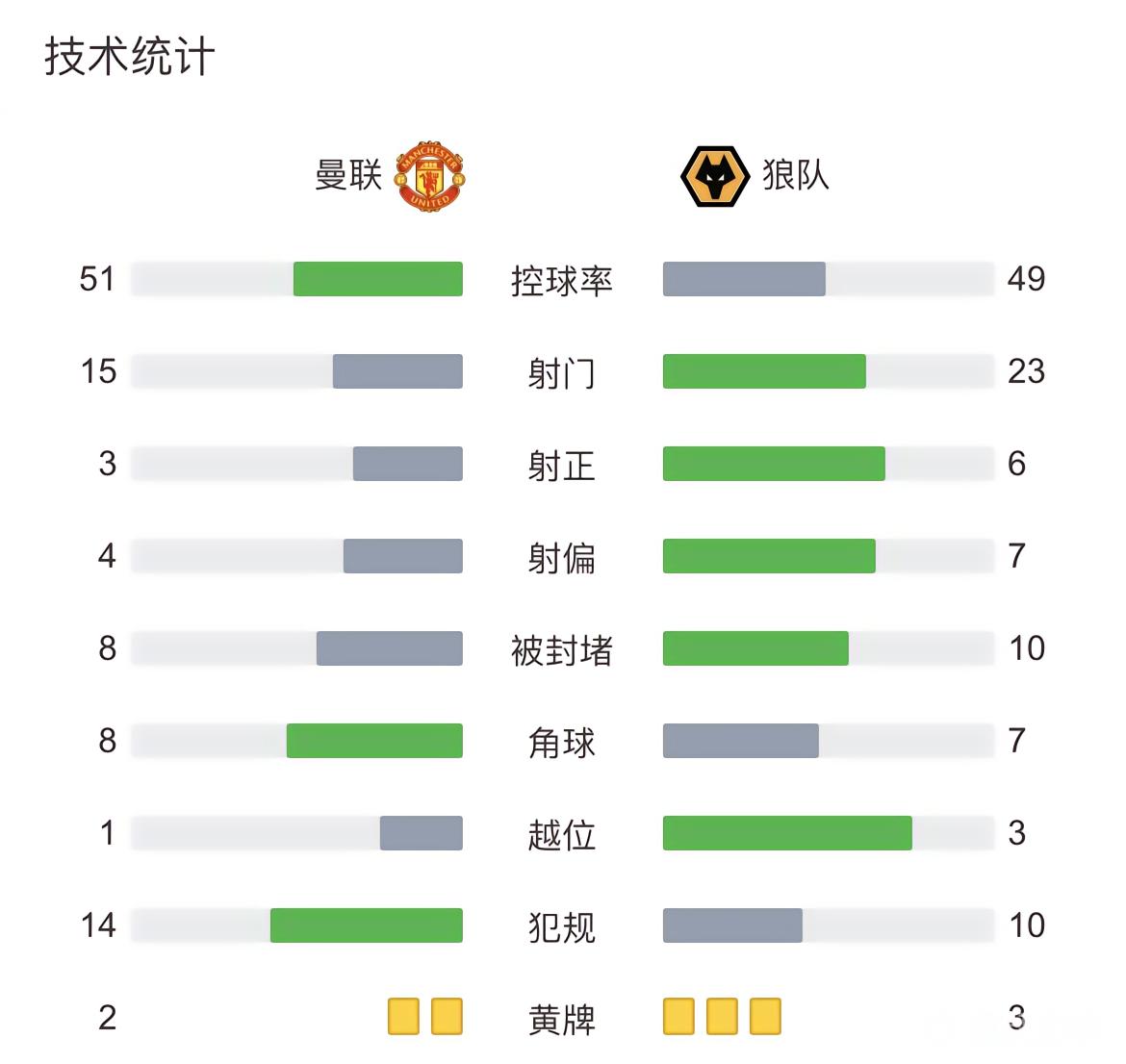 狼队首发:1-若泽-萨、22-塞梅多、23-基尔曼、15-克雷格-道森、3-努里(77'17-布埃诺)、27-马特乌斯-努内斯、8-若昂-戈麦斯(87'18-卡莱季奇)、5-勒米纳、7-佩德罗-内托、21-萨拉维亚(63'11-黄喜灿)、12-库尼亚(77'29-法比奥-席尔瓦)