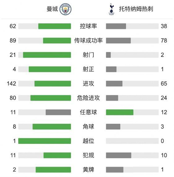 全场比赛结束,曼城1-0战胜热刺,曼城夺得联赛杯冠军。
