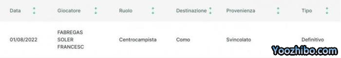 直播车08月01日讯 消息,意乙联赛官网显示,35岁的西班牙中场法布雷加斯已经加盟意乙科莫。