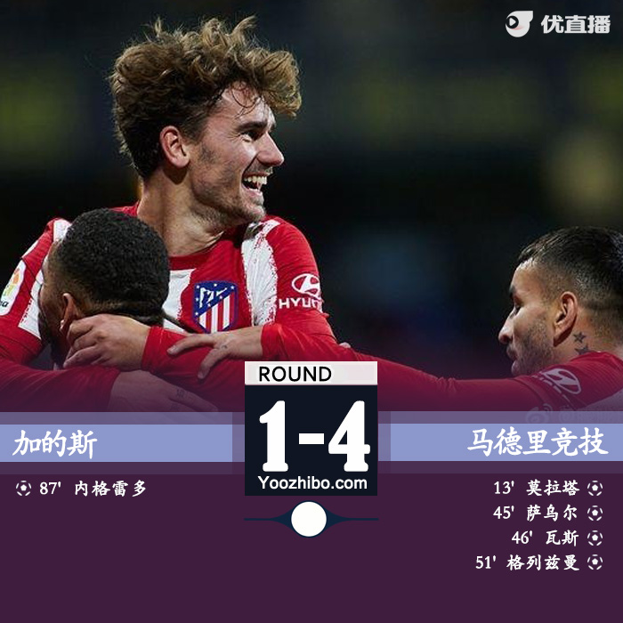 直播车讯 北京时间2022年8月5日03:00,2022/2023赛季热身赛进行了一场较量,加的斯坐镇主场迎战马德里竞技。上半场,马德里竞技率先打破僵局,凭借莫拉塔和萨乌尔的进球,2:0领先。下半场,马德里竞技率先发难,沃斯和格列兹曼取得进球扩大优势;随后,内格雷多也取得进球加的斯缩小差距。最终,马德里竞技4:1获胜。