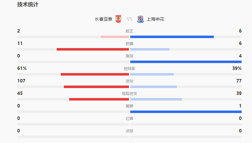 长春亚泰1-1上海申花 吕文君闪击武磊卡隆建功