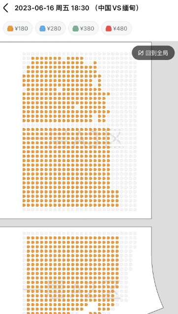 进入到选座的环节,可以明显看出,大片的空座,都没有卖出去。所以几乎可以提前确定,这场国足VS缅甸的比赛,球场上会出现大量的空座,以往国足在西安、合肥、广州等地比赛的球市火爆、座位满员的盛况,将不会出现。