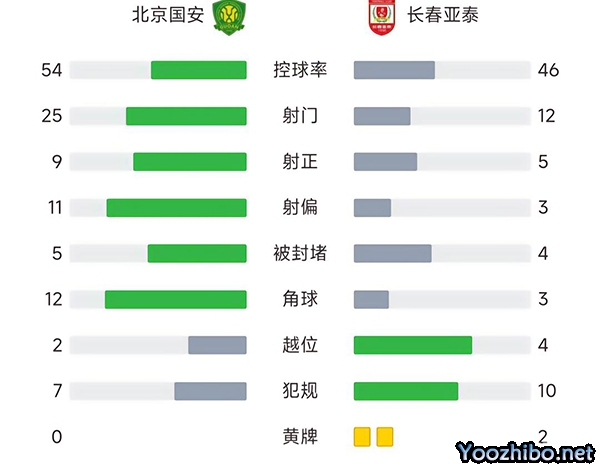 全场比赛结束,最终北京国安4-3长春亚泰。