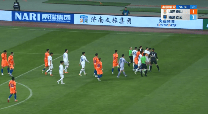 因为看不惯李湘彬的小动作和心思王大雷也是冲上前质问李湘彬,李湘彬也是回嘴,这也让王大雷情绪失控,试图冲上前算账,此时,几个南通的球员赶紧护住了李湘彬,而山东鲁能这便也是有6名球员冲上前,李湘彬也是差点挨揍。