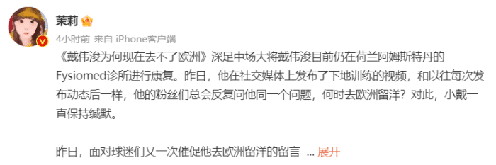 该记者表示,戴伟浚与深足的合同将在今年年底到期,和深足所有国内球员一样,戴伟浚被深足俱乐部拖欠了10个多月的薪水,在此期间,不少国内、国外俱乐部都向他抛去橄榄枝,但是,深足俱乐部不放人,既不给他补偿欠薪,也不给他自由身。