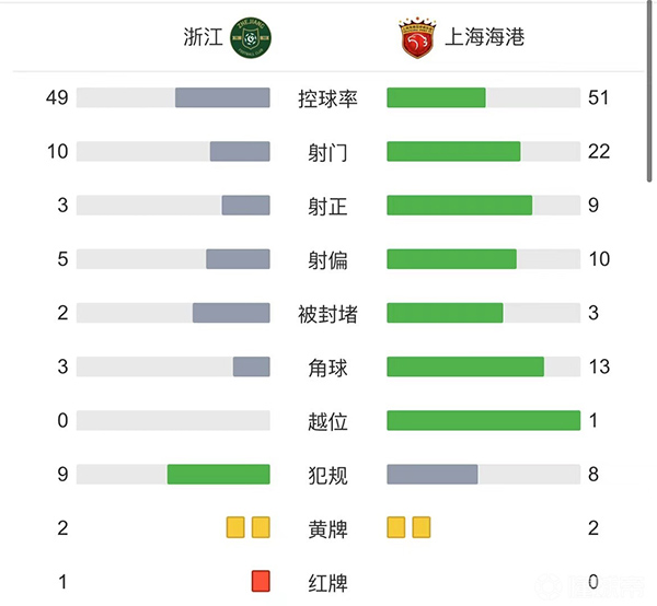 全场比赛结束,最终浙江2-1上海海港!