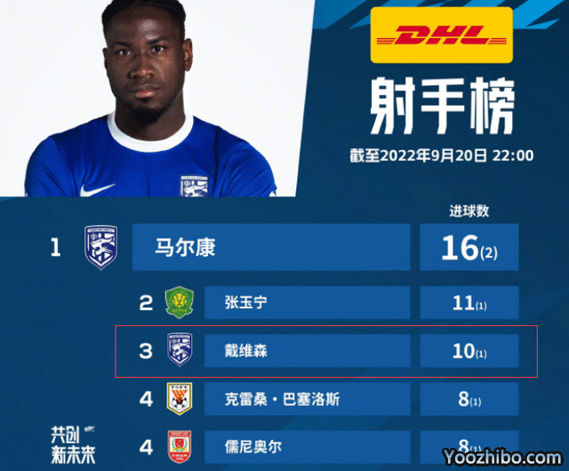 本赛季武汉三镇的表现出色,马尔康在进攻端的发挥非常稳定,打进16球领跑射手榜。不过近期两轮比赛,马尔康因伤缺席,他何时可以复出,现在还没有明确答案。射手榜上,马尔康的位置还是相对稳固,张玉宁11球排名第二位,戴维森打进10球,排名第三位。