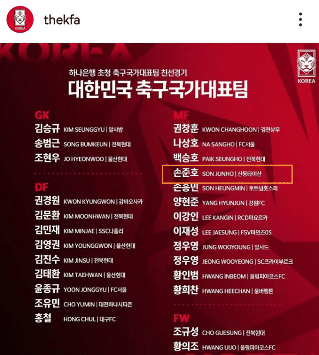 消息显示,韩国队本期集训是9月19日开始,27日结束,期间进行两场热身赛,分别是23日对阵哥斯达黎加,27日对阵喀麦隆,孙准浩也要争取出场。孙准浩参加国家队集训,肯定会影响在中超出场,他无法出战9月份的剩余比赛,10月初的比赛也会受到影响。