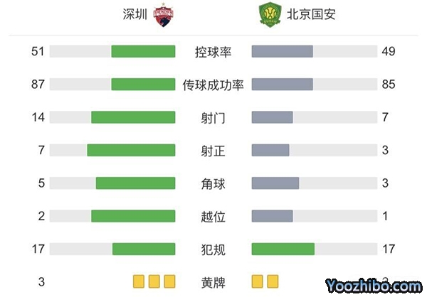 全场比赛结束,深圳2-1逆转北京国安。