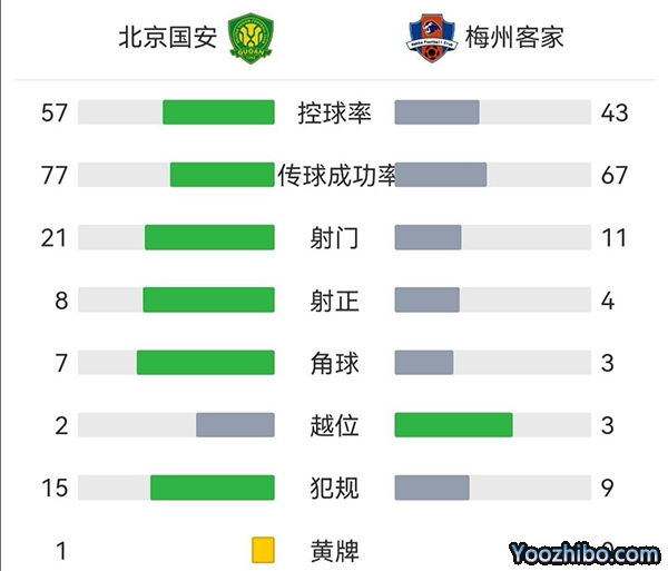 第45分钟,杜加利奇角球头球攻门击中站在门线前的队友尹鸿博,错失进球;随后上半场比赛结束,国安0-0梅州客家。