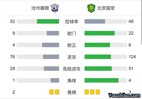 沧州1-1北京国安 朴世豪破门+送点张玉宁点射扳平