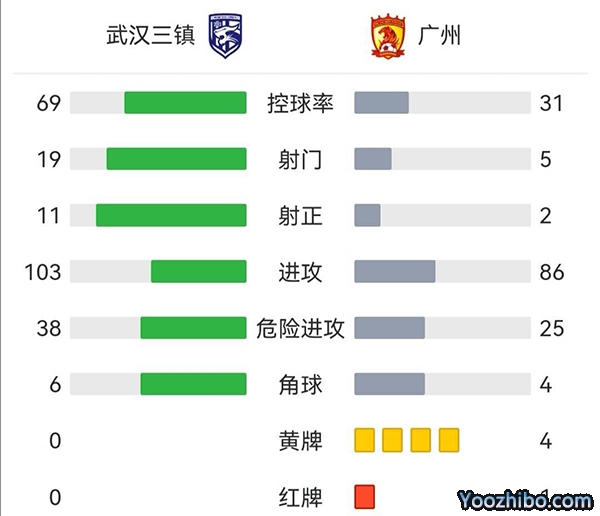广州队0-6武汉三镇 斯坦丘任意球双响吴少聪被罚下