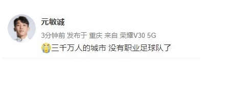 前重庆球员元敏诚:三千万人的城市,没有职业足球队了。