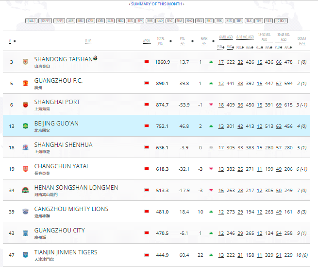 直播车02月04日讯 ,足球数据统计网站ECAR更新了今年第二期的东亚俱乐部排名,来自中超的山东泰山队为位列亚洲第三。