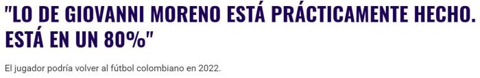 来源:直播车12-24 14:35直播车12月24日讯 据哥伦比亚媒体antena2.com报道,申花队长莫雷诺接近重返国民竞技。