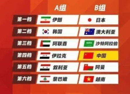 在12强分组当中,韩国队被分在了a组,对手有伊朗队、伊拉克队、阿联酋队、黎巴嫩队、叙利亚队!