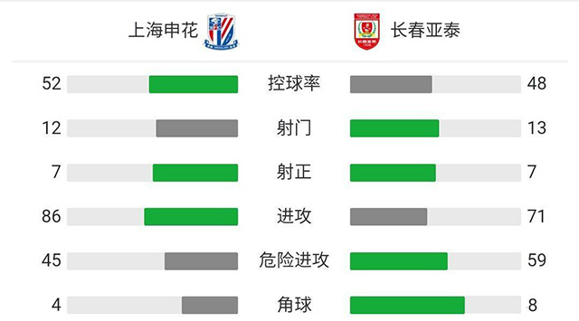 第90+4分钟,巴索戈前场右路挑传到禁区内,杨旭甩头攻门,球稍稍偏出立柱。全场比赛结束,上海申花1-2长春亚泰。