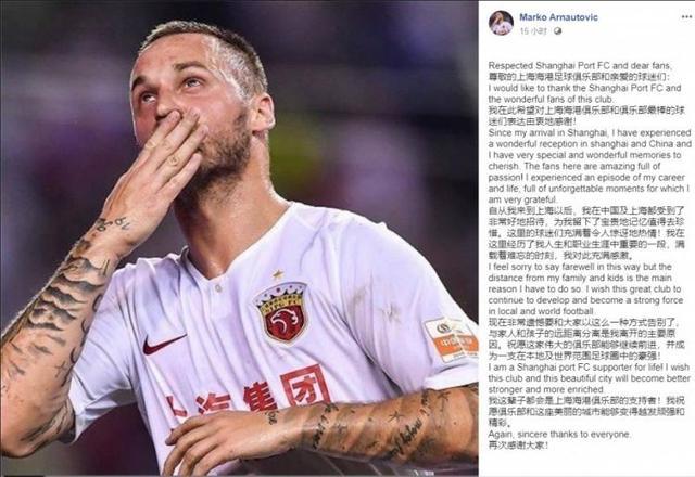 直播车讯日前,据意大利媒体的消息,已经离开上港的阿瑙科维奇,即将加盟博洛尼亚。今日,他也在社交媒体发了告别信。