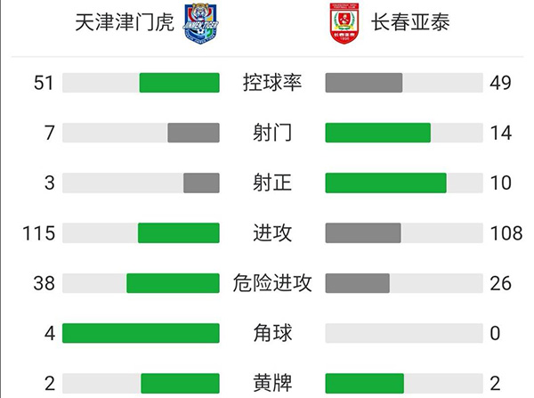 第20分钟,津门虎球员赵英杰解围时不慎送上乌龙助攻,埃里克冷静推射远射破门,亚泰2-0领先津门虎。