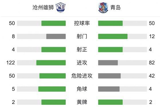 伤停补时5分钟。全场比赛结束,沧州雄狮2-0青岛。