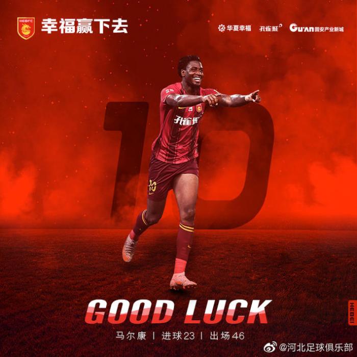感谢马尔康为河北队做出的贡献,祝福其在今后的职业生涯中一切顺利。
