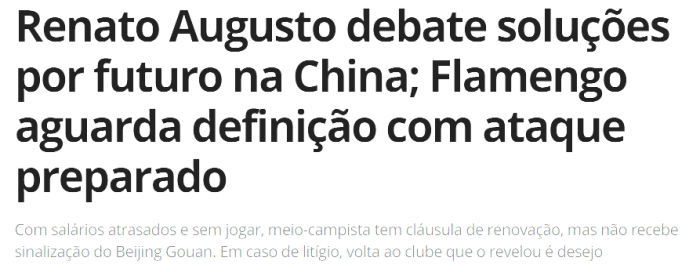 直播车讯 据巴西环球体育报道,奥古斯托被北京国安拖欠了5个月的薪水,双方续约的可能性很低。