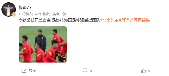 来源:直播车06-22 11:03直播车讯 昨日21日北京头条记者获悉,中国足协对于李铁的执教能力给予充分肯定,因此他执教国足的合同自动延续也已经板上钉钉。