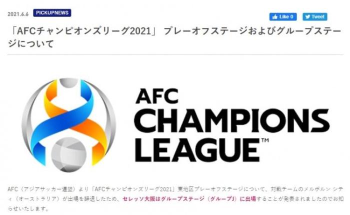 官方: 大阪樱花直接进入亚冠J组, 首轮对广州队