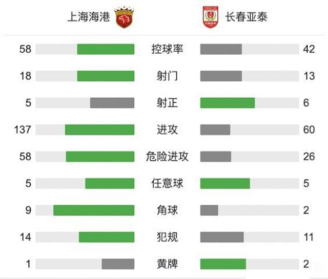 全场比赛结束,上海海港0-0战平长春亚泰。