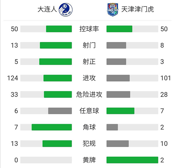 全场比赛结束,大连人1-0战胜天津津门虎。