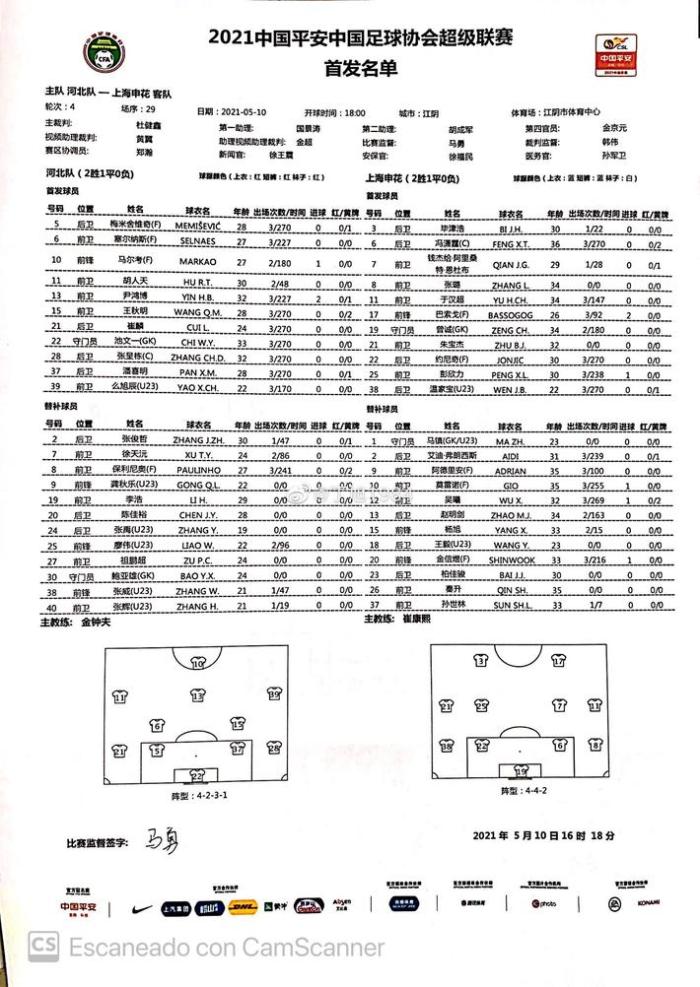 来源:直播车05-10 17:13直播车讯 北京时间5月10日18:00,中超第4轮,河北队对阵上海申花,赛前双方公布了本场比赛的首发阵容。