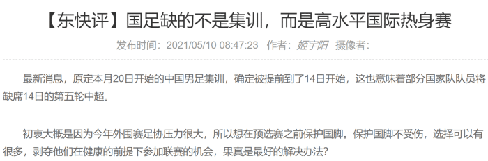 东体: 国足缺的不是集训, 而是高水平国际热身赛