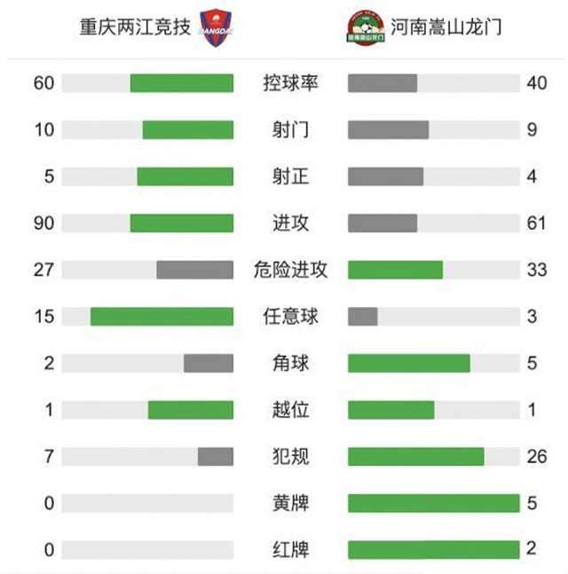 全场比赛结束,重庆两江竞技3-2逆转河南嵩山龙门。