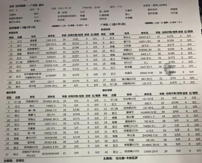来源:直播车05-09 19:28直播车讯 北京时间5月9日,中超联赛继续进行,广州队对阵沧州雄狮,本场比赛卡纳瓦罗要带队冲击两连胜,本场比赛的首发名单公布。