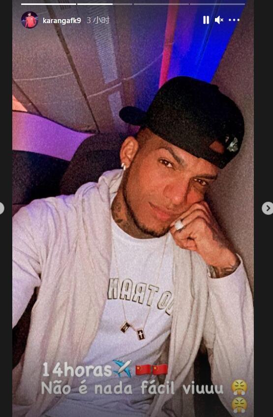 卡兰加晒出了他启程返回中国的照片并配文道:“14小时飞往中国,一点也不容易。”